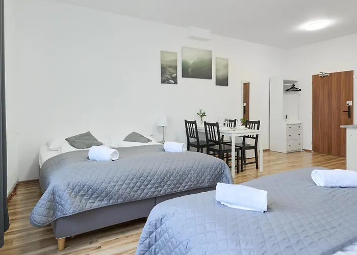 Enhederne i Mira Apartments ferielejlighed har et køleskab og en kogeplade. Det er mindre end 5 minutter til fods til U Zvonicky-busstation.